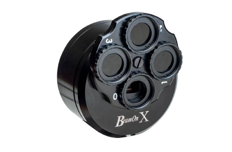 Model BEAMON-X-E-FW: Complete system with a camera, post, built-in filter wheel with a set of 3 filters (NG4,NG9,NG10) in housing, software on CD/Flash Drive, carrying case.
