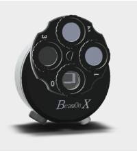 Model BEAMON-X-E-FW: Complete system with a camera, post, built-in filter wheel with a set of 3 filters (NG4,NG9,NG10) in housing, software on CD/Flash Drive, carrying case.
